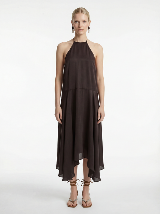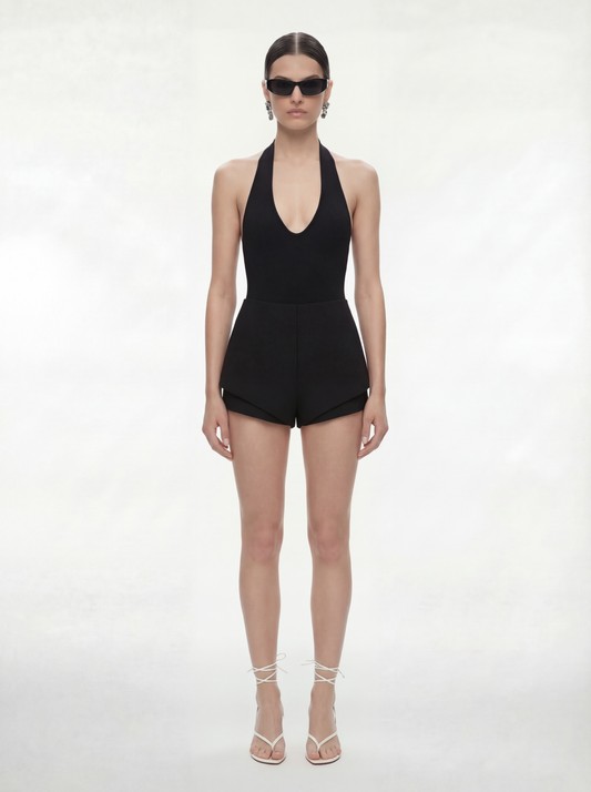 Halter-Neck Bustier Wool and Silk Mini Dress