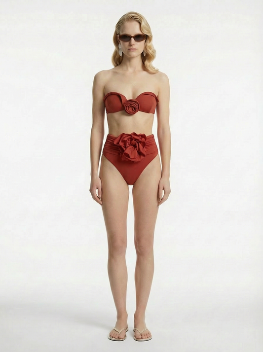 High-waisted Flower Appliqué Swim Bottom