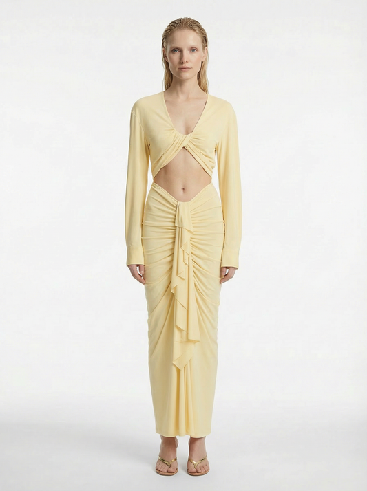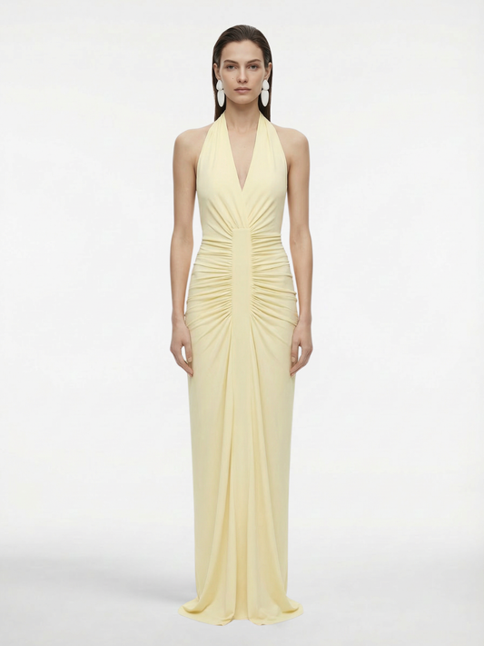 The 'Venus' Gathered Cupro Dress | Lemon