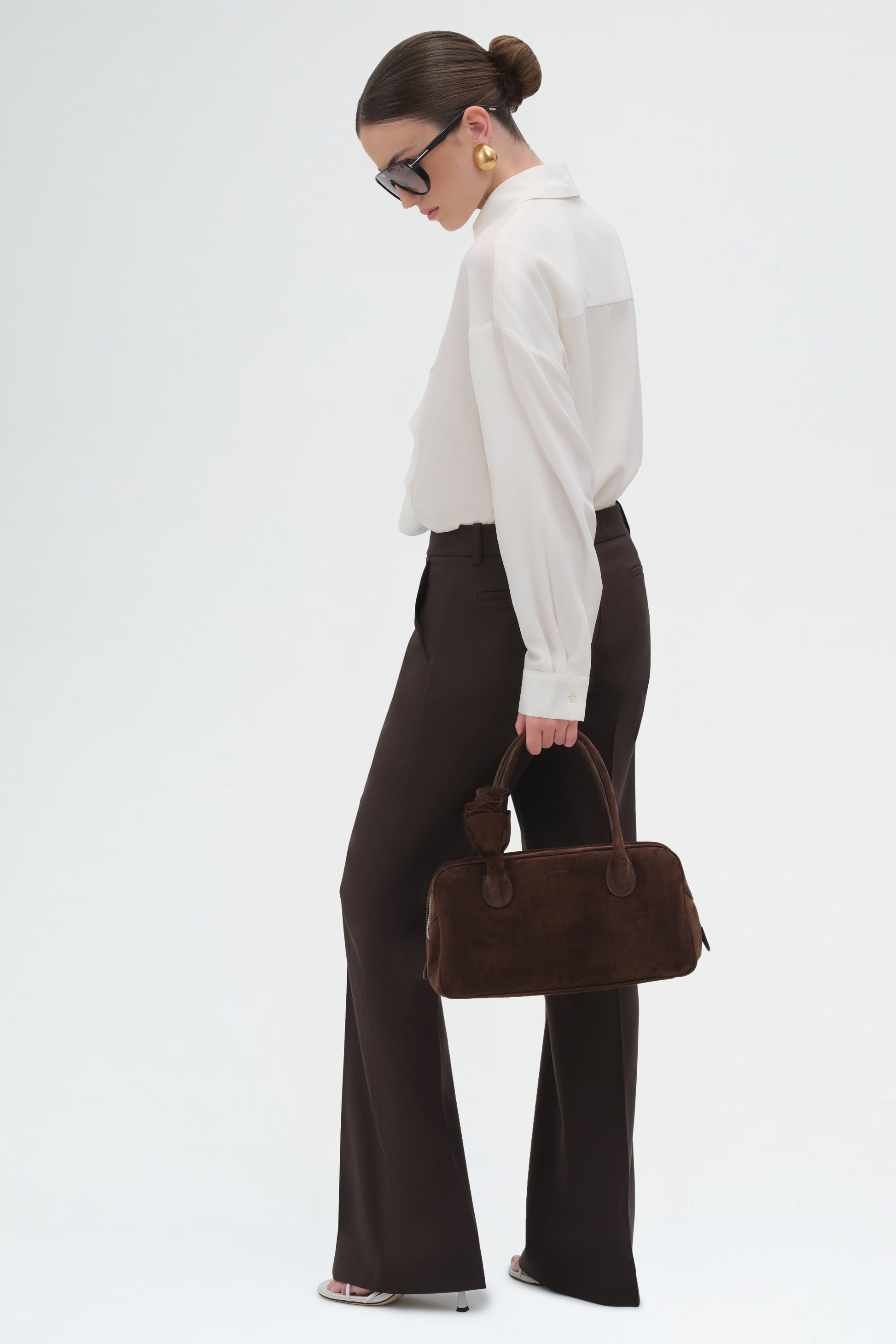 The Brigitte handbag blends 90’s nostalgia with Italian craftsmanship. Featuring an elegant silhouette, spacious interior, and signature leather flower detail for a blooming rose effect.