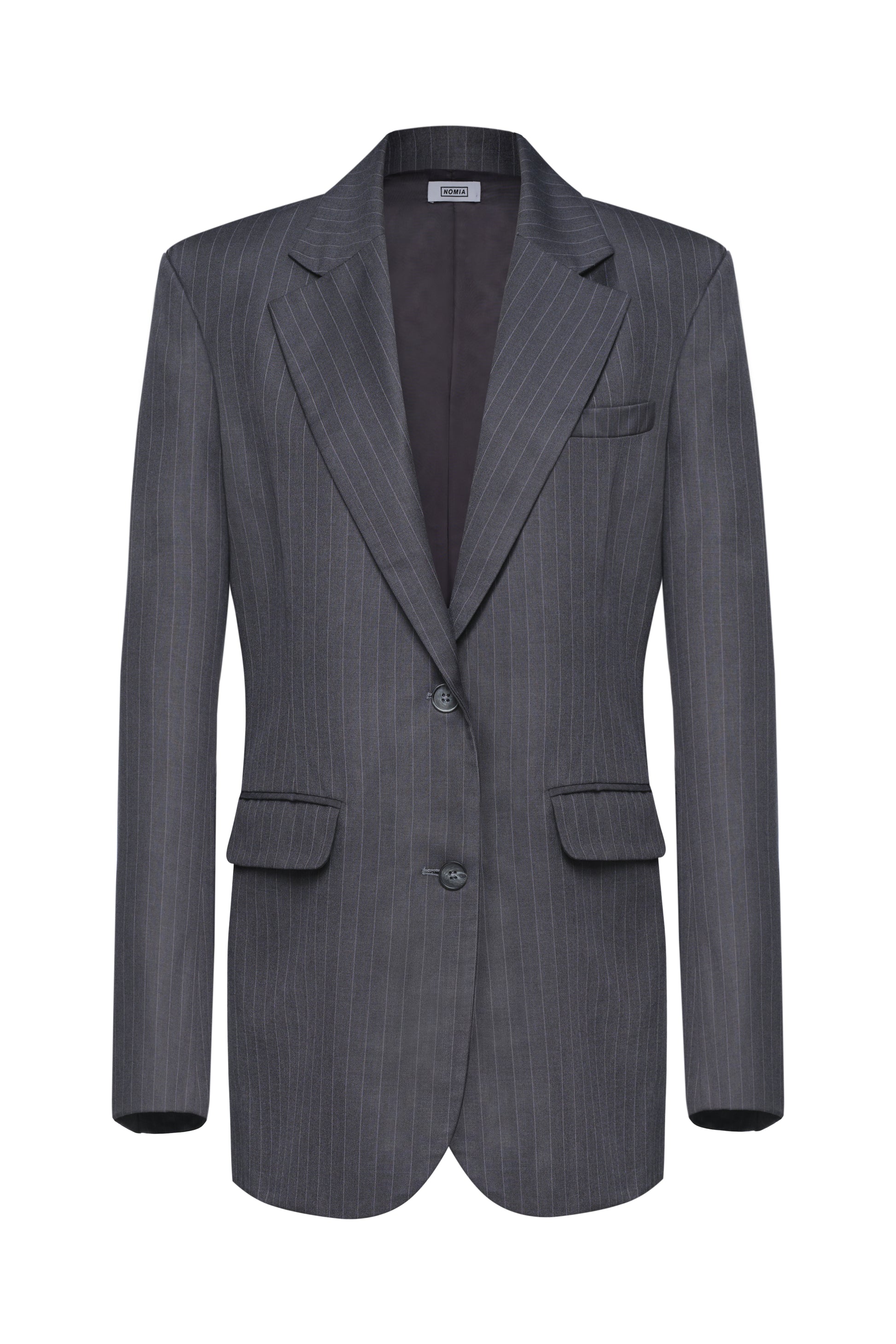 Effortlessly tailored in heavyweight pinstripe twill, this oversized blazer features a sharp two-button closure and flap pockets at the waist for a refined, modern silhouette.