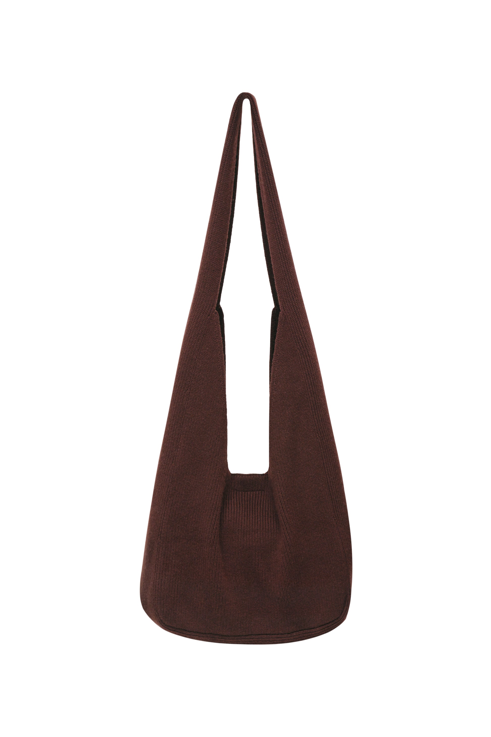 Minimalist charcoal knit bag with a soft sculptural shape and slouchy handle design. The perfect blend of modern ease and understated elegance.