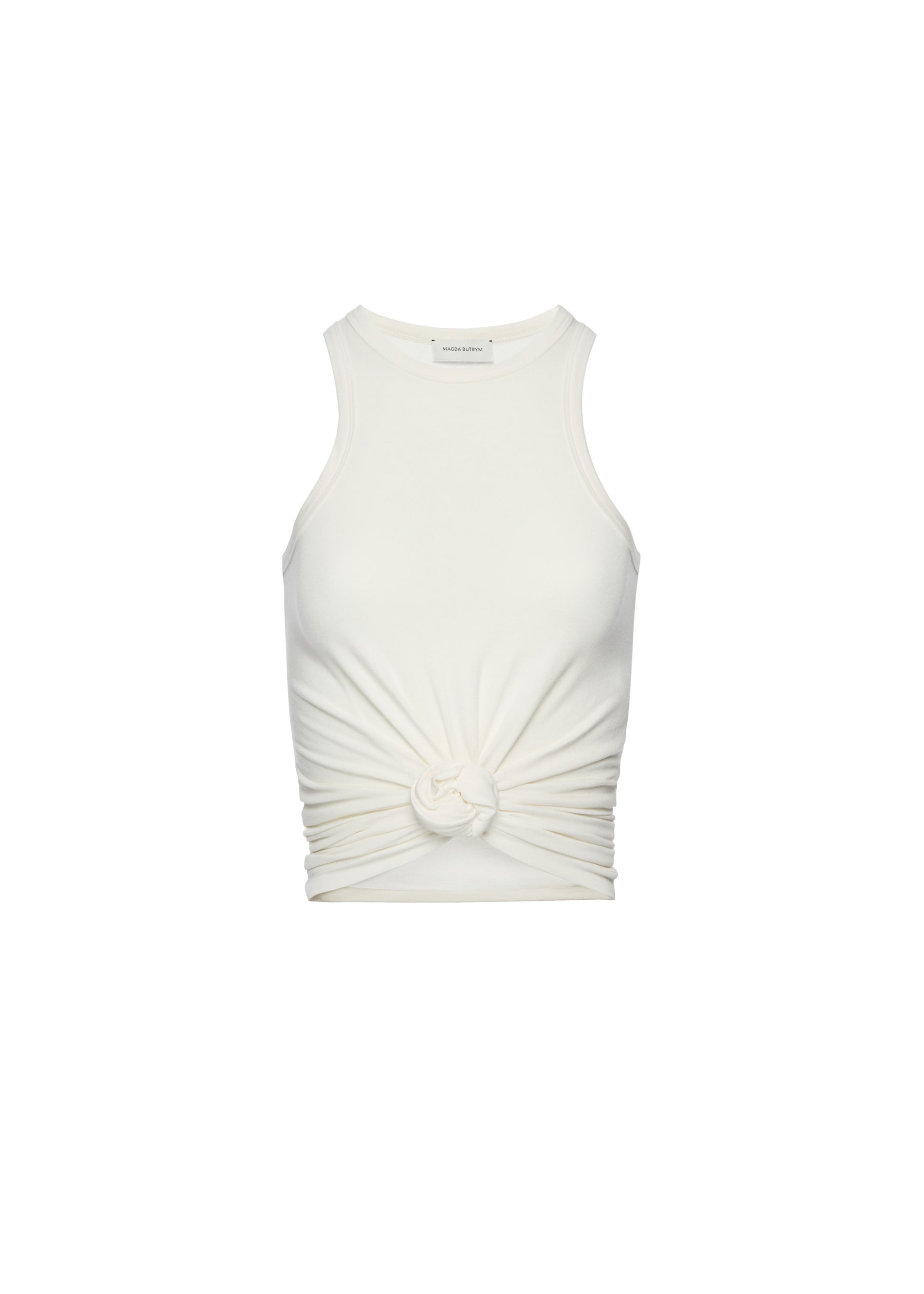 A classic ribbed tank top reimagined with a modern twist, featuring a front knot detail for a touch of effortless edge.
