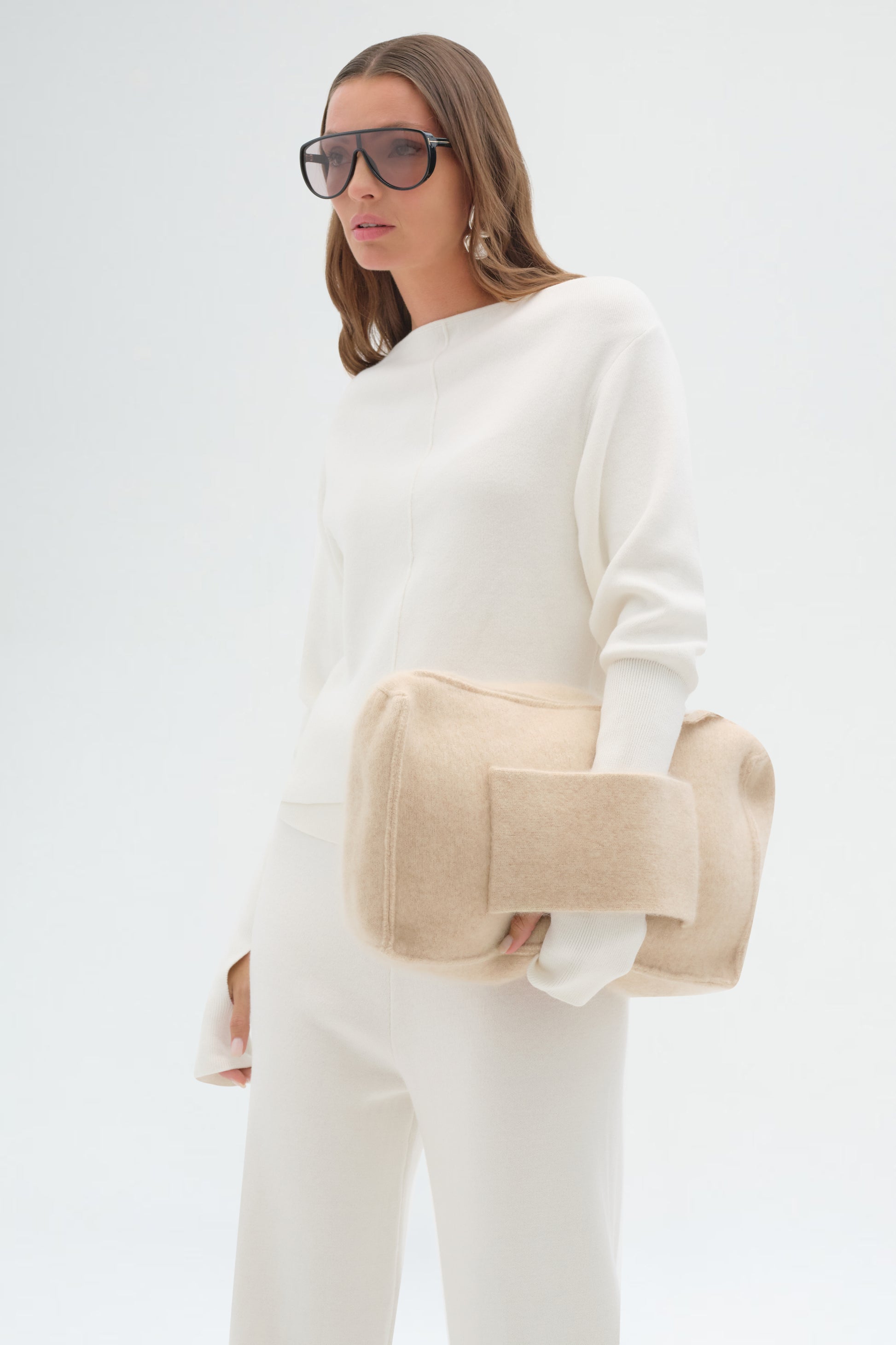 Minimalist beige clutch with a soft sculptural shape and sleek magnetic flap closure. A versatile accessory that elevates any look with understated elegance.