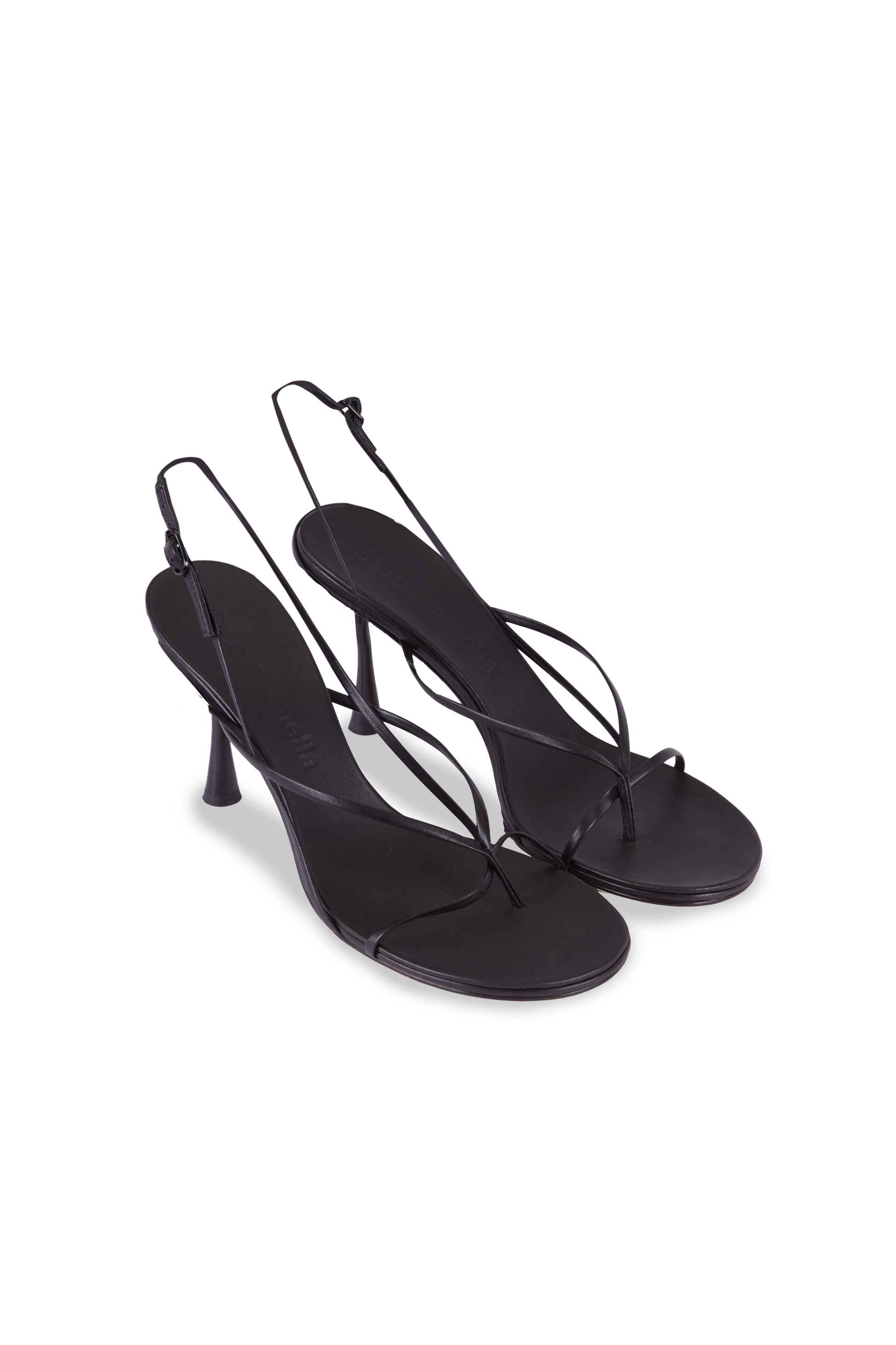 A modern take on the classic strappy sandal, these minimalist heels feature a sculpted hourglass heel and sleek slingback design. Perfect for effortless day-to-night styling with elevated edge.