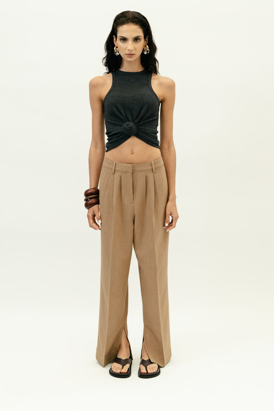 Wool Pinstripe Tapered Pants in Mahogany Stripe